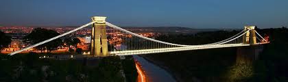 This is Clifton Bridge, probably the most photographed object in Avon county. Designed by the colourful Isambard Kingdom Brunel, completed in 1864, four years after his death. At least he knew it was being built. It is an extraordinarily lovely thing. Little-known fact: it is also an optical illusion – to offset the optical effect of the different heights of the cliffs on either side it slopes 3 feet upwards left to right in the picture, creating the illusion of being perfectly level.